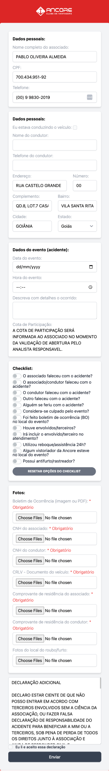 Ancore - Cadastro de Sinistros