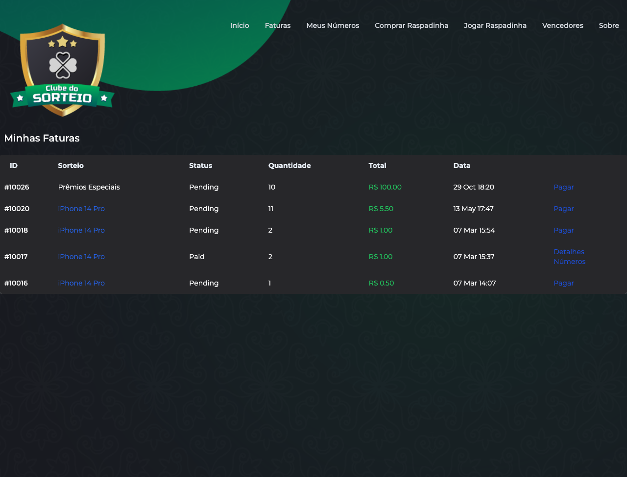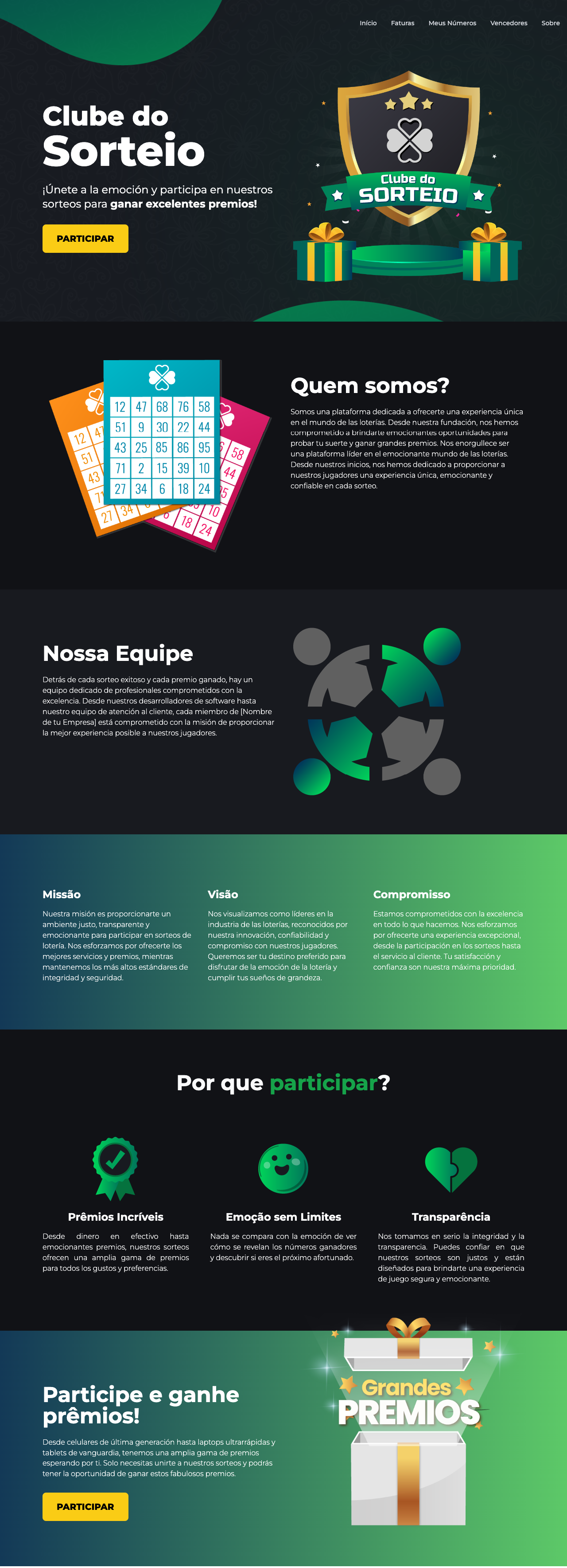 - Clube de membros para acompanhar sorteios e oportunidades exclusivas
